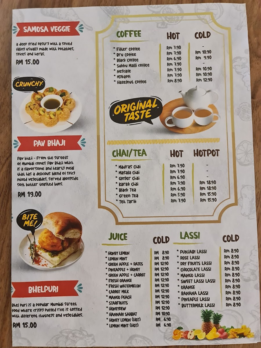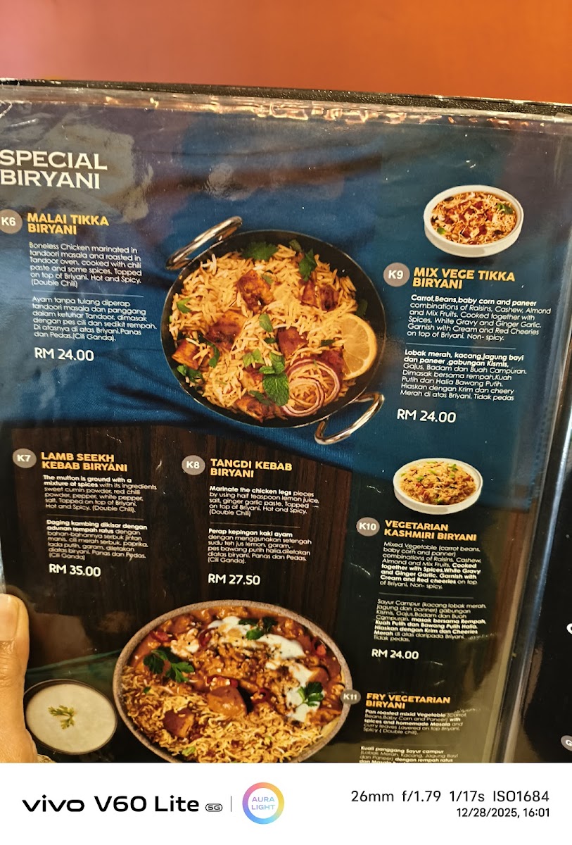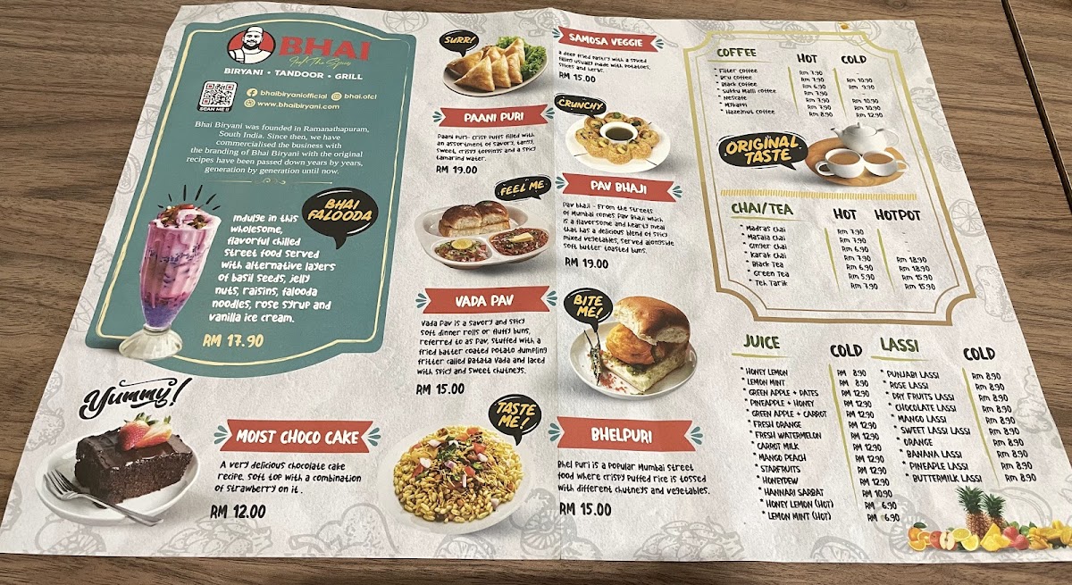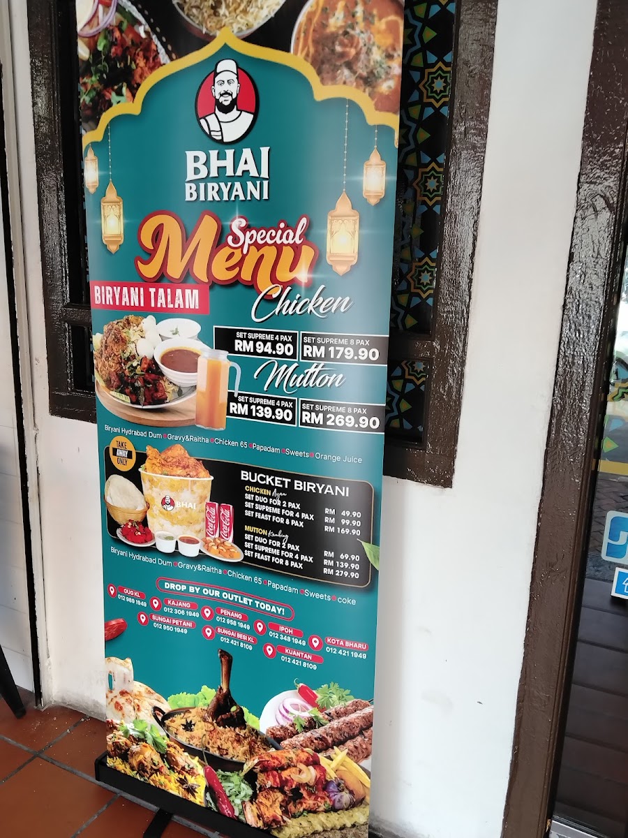 The menu at Bhai Biryani Penang offers a comforting and approachable selection of Indian Muslim dishes, centered around rich, fragrant biryanis and traditional breads baked fresh in the tandoor. Whether you're stopping by for a satisfying lunch or settling in for a relaxed dinner, the menu balances hearty mains like Chicken Dum Biryani or Lamb Mughlai Biryani with lighter sides and freshly brewed drinks.